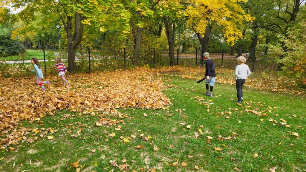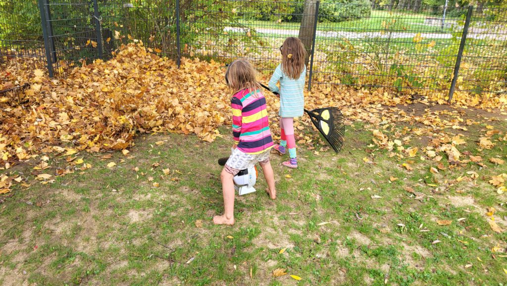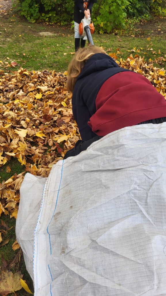 Nach den Herbstferien sind unsere Schülys voller Energie. Gemeinsam mit der Hausmeisterei wird unsere Rasenfläche vom Laub befreit und für Kleintiere und Insekten entsteht ganz sicher noch am Rande des Geländes ein kleines Winterquartier.
